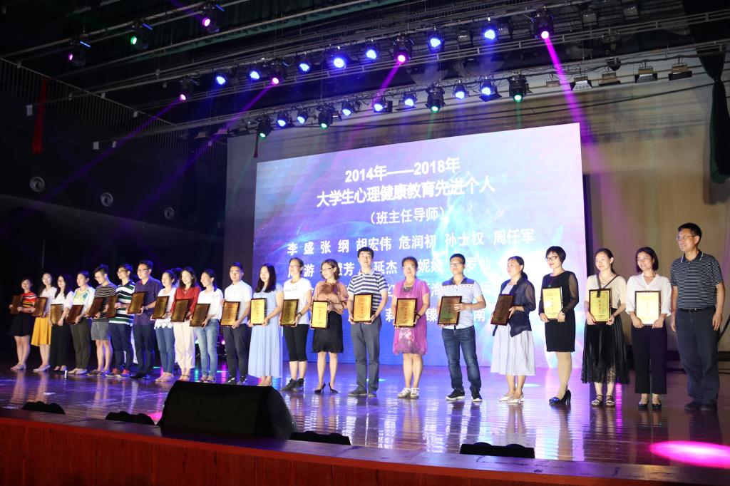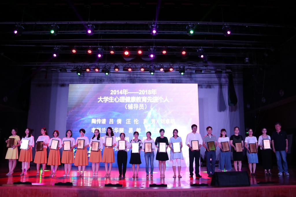 晚会上,授予10个学院“2014-2018年LETOU体育平台大学生心理健康教育工作优秀集体”称号;授予13名二级学院领导、24名班主任和研究生导师、20名辅导员“2014-2018年LETOU体育平台大学生心理健康教育工作先进个人”称号;同时还授予10个学院的朋辈心理互助组织“阳光团队”称号,107名朋辈心理互助员“阳光朋辈”称号。