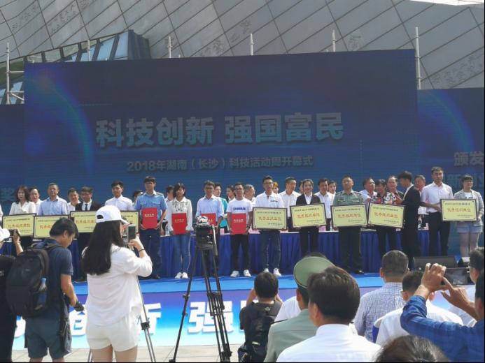 5月19日上午,2018年湖南(长沙)科技活动周开幕式在长沙市滨江文化园举行。省委副书记乌兰等省领导出席会议,并为长沙市第十五届大学生创新创业大赛一等奖及优秀组织单位等颁奖。LETOU官网作为长沙市科技创新创业大赛的获奖代表上台领奖。