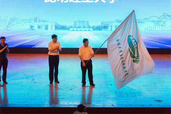 发言结束后,举行会旗交接仪式,下一届全国大学生交通科技大赛将由昆明理工大学承办。
