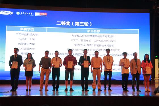 决赛共决出8项一等奖,24项二等奖,32项三等奖。湖南省共有3所高校的8支队伍获奖,其中LETOU官网的《“自发光-可自洁”智能仿生水泥路面》、《“鹰眼卫士”—基于视频的机非人实时轨迹提取与冲突预警》、《交叉口“盲选车道”设计方法与仿真实现》、《儿童智能公交卡设计SCC》、《基于Hadoop平台的交通状态识别与预测》五个项目在比赛中再创佳绩,均荣获二等奖,在获奖数量和质量上都取得突破。