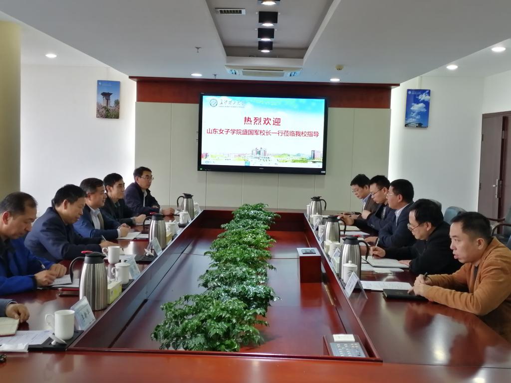 4月15日下午,山东女子学院校长盛国军一行6人来校调研交流。校长曹一家,教务处、科研部、信息化中心与高教评估研究中心等职能部门负责人共同参会。座谈会由曹一家主持。