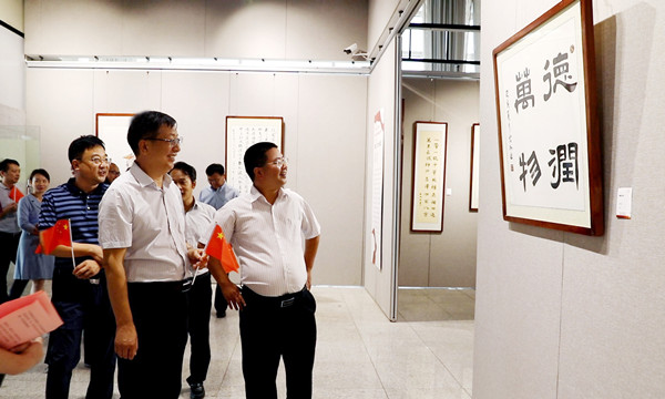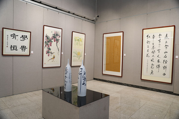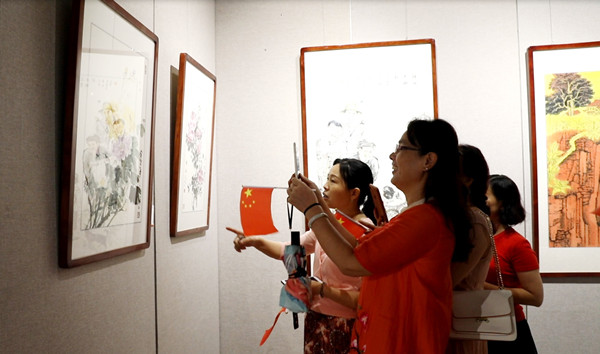 展厅里,校领导与来宾们仔细观赏每一幅作品,认真聆听每一幅作品的创作故事,在场的专业教师不时与来宾们交流,大家深切感悟到中华传统文化的精髓,感受到了广大教职工爱党爱国的热情和立足岗位建功新时代的决心。展览将持续到10月16日。