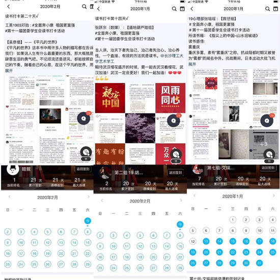 “老师,这本书我今天又看了20页了,打卡成功。”这是汽机学院开展“匠心学堂,一人一书”经典阅读、“2月,有书有你”读书打卡、最美笔记评选等活动中的反馈。学院辅导员彭琼英运用微信小程序,带领学生开展每日读书打卡;组织线上学习帮扶,开展朋辈互助学习帮扶,分科目建立9个线上学业帮扶群,开展线上答疑。