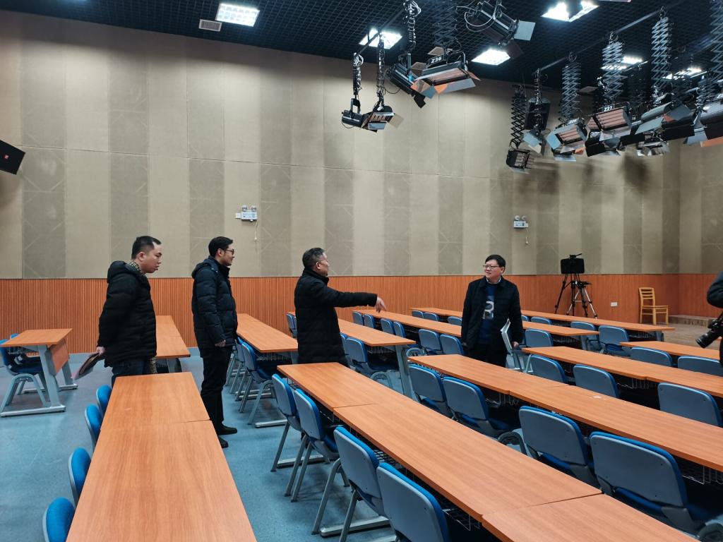 会后,刘建民实地查看了信息化教学总控室、微课录播教室、机房、演播厅、多功能智慧教室,详细了解网络数据中心机房、课程录制等情况。
