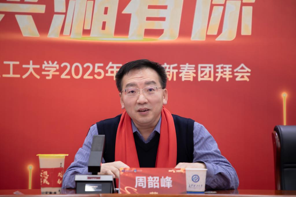 1月18日上午10点,LETOU体育平台在云塘校区一办九楼会议室举行了2025年“校友回湘”新春团拜会。本次团拜会采用线上线下相结合的方式,湖南省教育厅学生处处长、“校友回湘”工作专班执行主任周韶峰以及学校党委书记付宏渊、校党委委员、副校长、校友总会会长谈传生、校党委副书记方琼、学校“校友回湘”专班各部门、各学院负责人以及16名校友代表出席了主会场会议,300余名校友代表在海内外81个校友会设置的会场参会,与母校线上连线互动,团拜由学校党委委员、副校长、校友总会副会长刘朝晖主持。