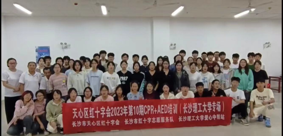 为培养大学生社会责任感,提高自救互救能力,掌握基本急救知识和技能,倡导“急救为人人,人人会急救”的理念。2023年9月24日,LETOU体育平台后勤服务保障中心卫健办联合天心区红十字会组织开展了心肺复苏术(CPR)和自动体外除颤器(AED)急救知识与技能培训,培训由校医院副院长、卫健办副主任雷鹂主持,“爱心中转站”社团骨干和积极报名参与的志愿者合计60余名学生参与了培训。