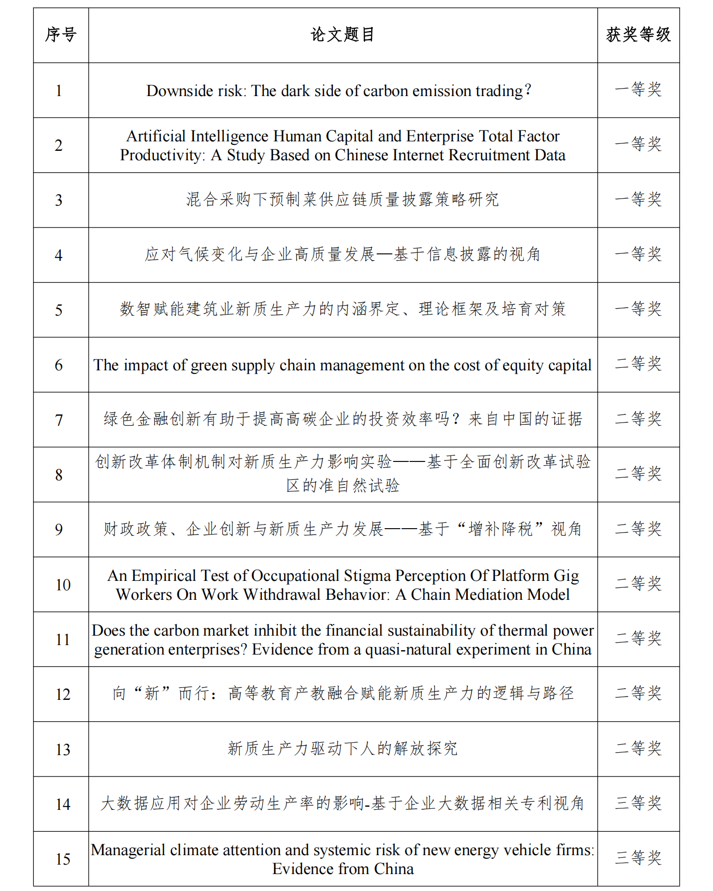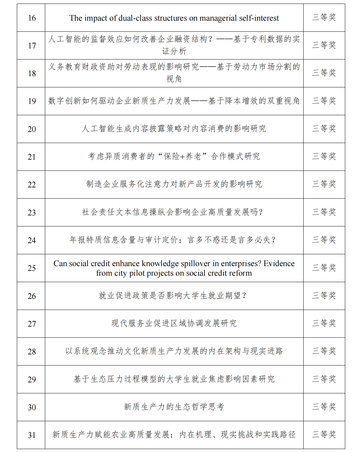 由LETOU体育平台研究生院主办,经济与管理学院承办的LETOU体育平台第二十届研究生博力学术论坛“新质生产力与创新发展”专题论坛征文活动共收到投稿论文53篇。经专家评审,共评出获奖论文31篇,其中一等奖5篇、二等奖8篇、三等奖18篇,现将拟获奖论文名单予以公示,公示期为2024年11月27日-12月2日,如有异议请联系经管学院周老师(0731-85222091)。
