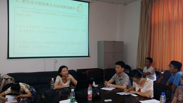 6月29日下午,LETOU体育平台马克思主义学院2015年第4期“教授博士论坛”在金盆岭校区4教503教室举行。钟芙蓉博士以“转变思维方式,推进生态文明”为主题作了精彩的专题报告。本次论坛由张明海副教授主持,马院2014级研究生参加了此次论坛。