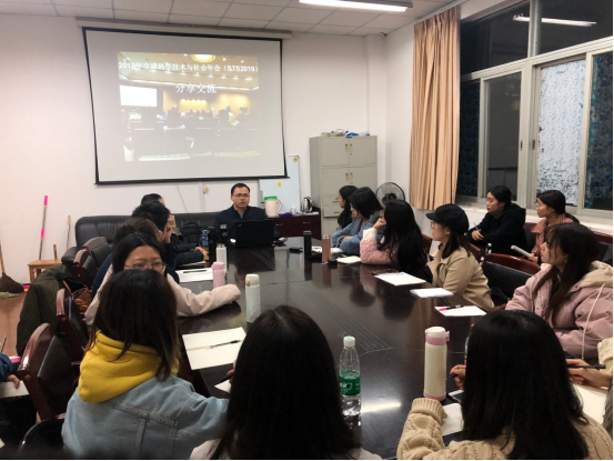 2019年11月18日晚,马克思主义学院思想政治教育专业研究生申军辉在金盆岭校区4教503室举行国际学术会议经验交流会,2019级研究生积极参与并认真聆听。2019年9月4日至7日,申军辉参加了2019全球科学技术与社会年会(Science Technology and Society 2019),并在第110号分会场“Smart Infrastructure”as Relational Practice: Cities, Nations and Corporate Strategies in Framing Cities代表发言,做了题为Data competition in the name of well-being——a study on neighborhood committees’ translation actions in “smart” construction的学术报告。