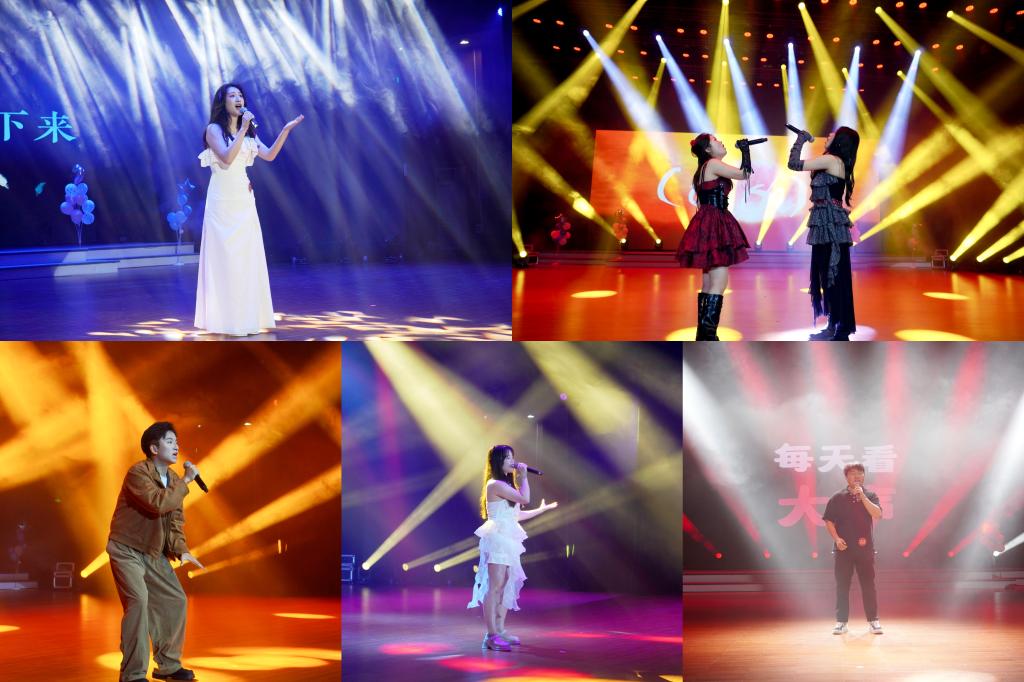 研究生艺术团舞蹈队演绎的开场舞《We Rock》点燃全场,本次决赛在热烈的氛围中正式拉开帷幕。比拼共分为两轮,第一轮“主题分组赛”分为“回望时·韶华留声”“歌当下·声动理响”“共此行·理想未央”三大主题,15组选手将根据自选主题展开本轮演唱。方家的一首《青花》带观众走进一幅烟雨朦胧的画卷,缓缓勾勒出釉色里藏着的岁月故事;沉浸于李欢的《大鱼》中,听众们跟随旋律,感受灵魂在自由与浪漫中翱翔;曾宇欣的《天空没有极限》用热血旋律打破所有桎梏,感受人生的无限可能。