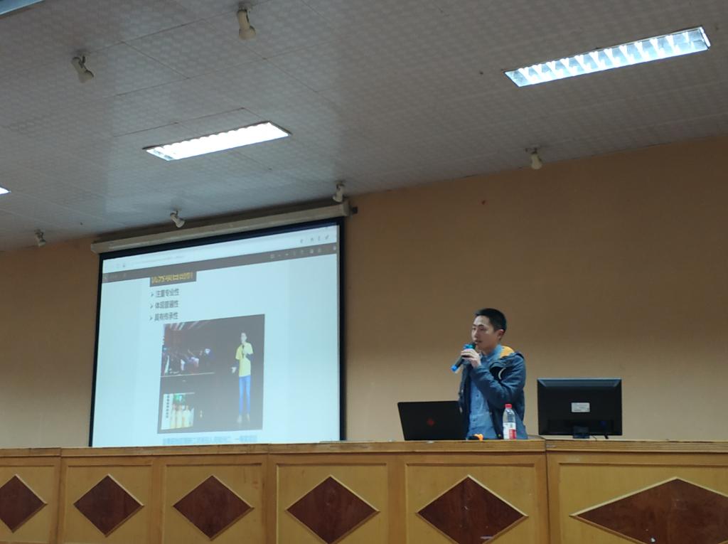 第二位分享者谢李为是湖南省“创青春”大学生创新创业大赛金奖项目负责人,他曾带领学院团队获得校研究生暑期专业实践一等奖。谢同学结合自己参加暑期社会实践的经历和心得体会,从四个方面分享了经验:首先他剖析了优秀项目应该具备的特点,一个好的项目应具有专业性、普遍性、传承性;其次在项目选题时要谨记现实性、创新型、可行性三个原则;如何组建一支优秀团队也相当重要,他提出了“四个一”模式,即“一个日记本、一个笔记本、一篇新闻稿、一场交流会”,让团队成员可以相互依靠,迅速建立团队归属感;最后他指出要学会包装实践产品,汇报的ppt 内容要有逻辑、尽可能做到图文并茂、可以找专业人士为汇报视频配音。