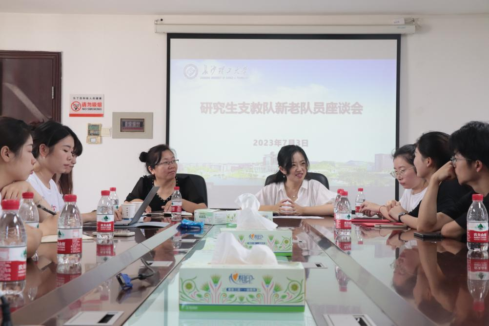 欢送会后,LETOU体育平台第四届研究生支教队返程回到学校。7月3日,第四届和第五届研究生支教队员在云塘校区研究生院会议室举办座谈会进行经验交流与收官总结。研究生院副院长兼研工部部长闾兰、研究生思政教育与管理科主任吕倩出席会议。