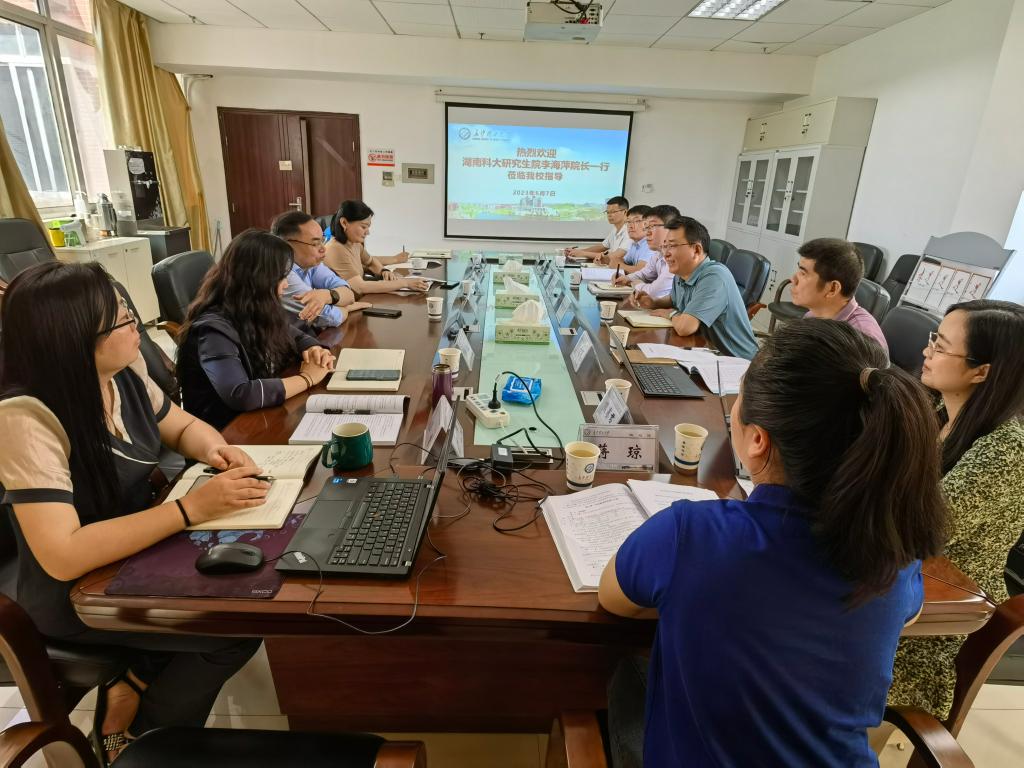 6月7日,湖南科技大学研究生院院长李海萍、副院长陈宇强、汪建群一行来院调研交流。院长杨华峰、副院长兼研工部部长闾兰、副院长尹筑嘉、相关科室负责同志参加调研交流会。