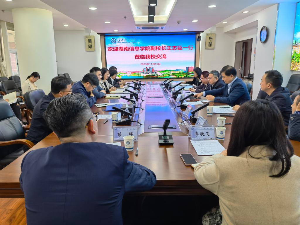 11月10日上午,湖南信息学院副校长王志臣一行来校洽谈。校党委委员、副校长胡永乐出席并主持会议。湖南信息学院科研处、电子科学与工程学院、计算机科学与工程学院、艺术学院等相关负责人和老师,LETOU官网科学技术处、研究生院、计算机与通信工程学院、设计艺术学院等相关负责人参加座谈。