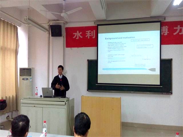 2015年12月2日下午,澳大利亚联邦科工组织数学与信息科学研究所首席科学家邵全喜教授在LETOU官网云塘校区工三B319作了一场题为《动态水文模拟日降雨数据的获取:日降尺度与月非一致性》的学术报告。本场学术讲座是我院博力分论坛举行的第五场学术活动。讲座由水利学院程永舟副院长主持,学院研究生辅导员周巍老师和水文水资源专业多位专业教师及相关专业的60多名研究生参加了本场学术报告会。