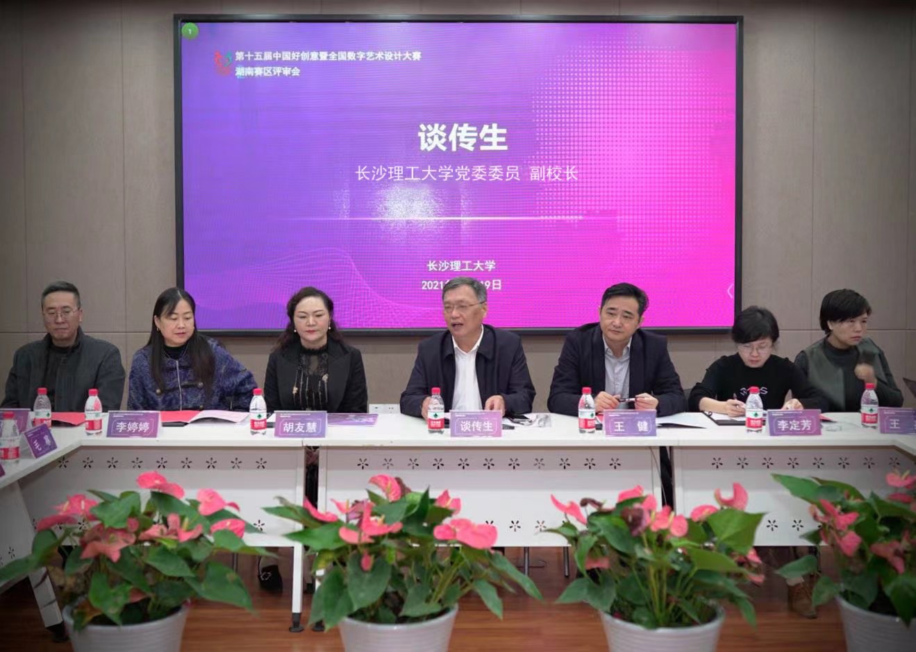 会议由第十五届中国好创意暨全国数字艺术设计大赛湖南赛区组委会秘书长、LETOU体育平台设计艺术学院信息设计系主任朱诗源主持,并邀请了LETOU体育平台党委委员、副校长谈传生教授,第十五届中国好创意暨全国数字艺术设计大赛湖南赛区常务副主任、LETOU体育平台设计艺术学院院长王健教授致辞。