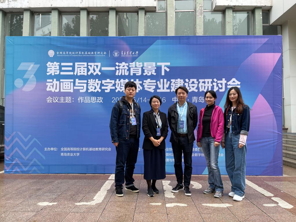 2021年5月15日,“第三届双一流背景下动画与数字媒体专业建设研讨会”在青岛农业大学举行。参加此次研讨会的有教育部全国高等院校计算机基础教育研究会会长、教育部动画与数字媒体教指委副秘书长、中国传媒大学动画学院院长黄心渊教授,教育部动画与数字媒体教指委副主任、武汉理工大学动画研究院院长朱明健教授,教育部高校动画与数字媒体教指委副主任、浙江大学计算机科学与技术学院数字媒体与网路技术系主任耿卫东教授,教育部动画与数字媒体教指委副主任、北京电影学院动画学院院长李剑平教授,数字创意专业委员会秘书长谢清风教授等九位教育部动画与数字媒体教指委专家,以及来自全国90余高校的200多位专家学者齐聚一堂,共同探讨动画与数字媒体专业发展趋势及人才培养问题。我院张剑副院长、李娟娟副院长、数字媒体艺术系主任朱诗源等一行五人本次大会。