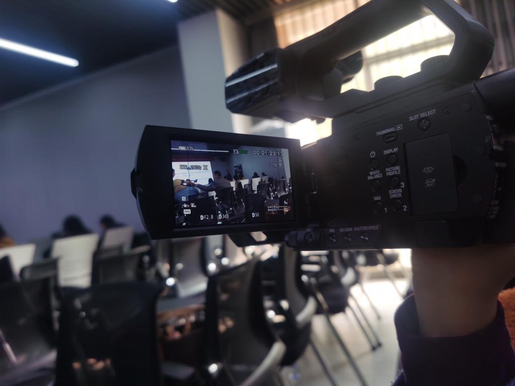 在自由提问环节,学生们各抒己见,提出了相关问题与当下困扰的疑惑,都得到专业导师老师的详细解答。在体验环节,专业导师邀请师生近距离操作体验设备,介绍各种4K超高清摄影机、灯光设备,邀请大家动手进行实际操作,并进行了更为深入的交流与沟通。