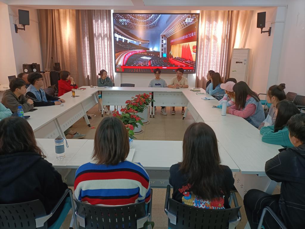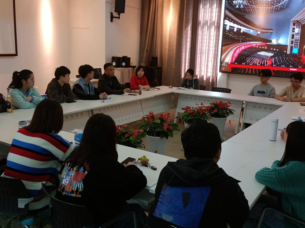 10月23日上午,设计艺术学院组织观看“纪念抗美援朝胜利70周年”直播并开展师生座谈会在艺术楼C320举行。党委书记江河、副书记文丽丽以及学生代表参加座谈会。