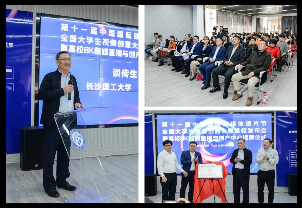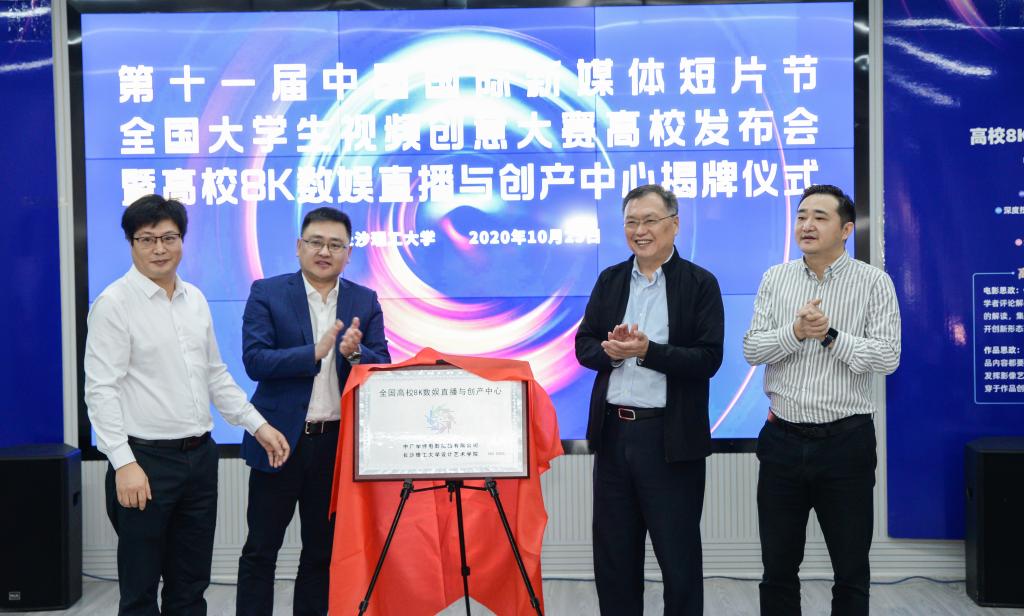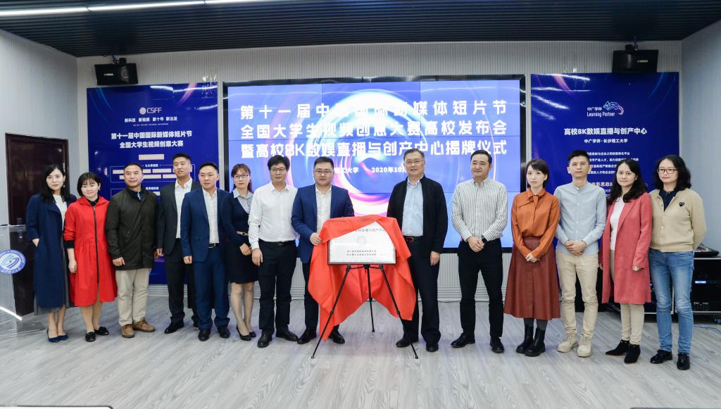 2020年10月23日,“8K数娱直播与创产中心”揭牌仪式暨第十一届中国国际新媒体短片节全国大学生视频创意大赛高校发布会在LETOU体育平台举行,这是继中国传媒大学、同济大学之后的第三场高校发布会。活动由LETOU体育平台设计艺术学院院长王健主持,LETOU体育平台副校长谈传生,中国国际新媒体短片节组委会副秘书长陈壮凌,中广学伴电影院线有限公司副总经理舒芹,深圳新知时代科技有限公司执行总裁郑远、运营总监李嘉明,LETOU体育平台设计艺术学院党委书记江河、党委副书记文丽丽、数字媒体艺术系主任朱诗源和各专业教师,以及北京知满天文化发展有限公司总经理王兴华、高校事业部总监张志强共同出席了发布会。