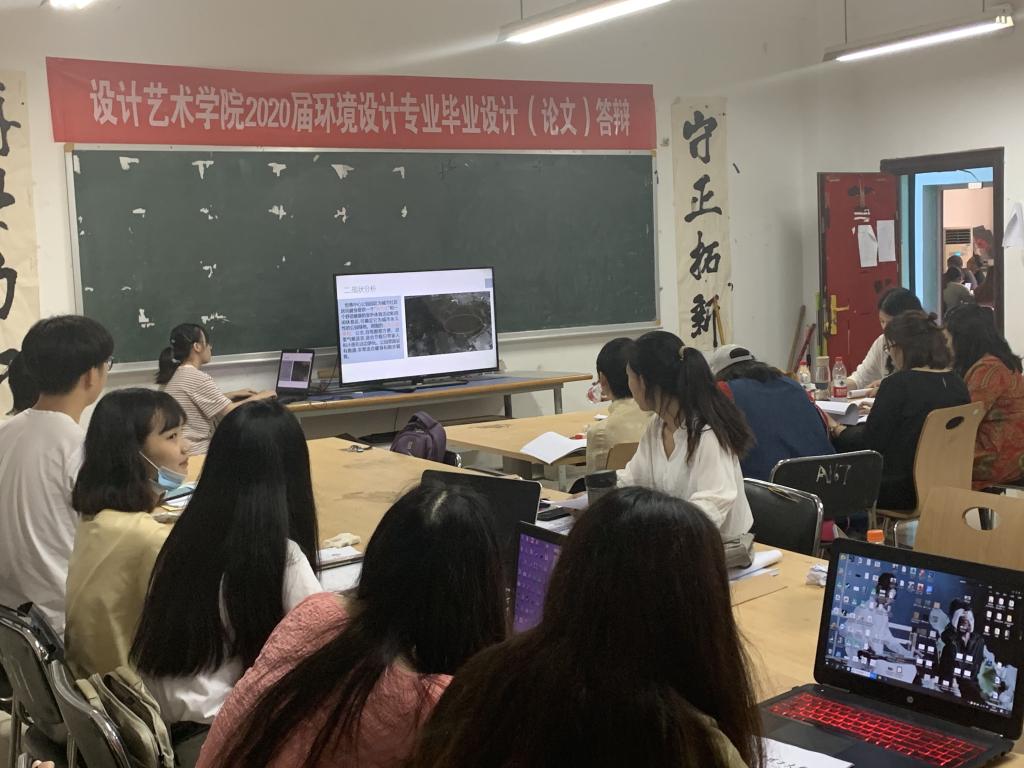 2020年6月9-10日,设计艺术学院毕业答辩在云塘校区建筑艺术楼和金盆岭校区举行。本次本部和城南一起有422人参加线下答辩,120人参加线上答辩。本次答辩采取线上、线下答辩同时进行的方式,按专业采取抽签分组的方式,5专业共分22个组同时进行。每个答辩小组由3位答辩委员和1位答辩秘书组成,毕业学生按抽签顺序依次进行答辩。
