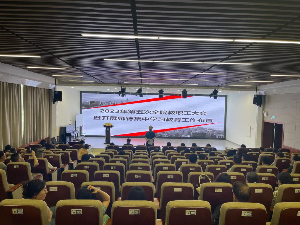 为深入推进学习贯彻习近平新时代中国特色社会主义思想主题教育,进一步落实好师德师风建设相关工作要求。7月4日下午,设计艺术学院2023年第五次全院教职工大会暨开展师德集中学习教育工作布置在艺术楼学术报告厅召开,会议由院党委书记李伟主持,全体教职工参加会议。