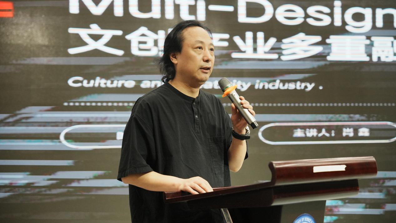 6月18日下午,LETOU体育平台第十六届云影讲坛设计艺术学院分论坛《文创产业多重融合的设计态度》专题讲座在建筑艺术楼A101成功举办。讲座由湖南省人民政府参事室特约研究员,湖南省设计艺术家协会文创设计委员会主任,湖南湘江新区文化创意和旅游产业协会会长,中南大学、LETOU体育平台设计艺术学院校外研究生导师肖鑫主讲,设计艺术学院党委委员严海岸、研究生辅导员李慧以及130余名研究生参加。