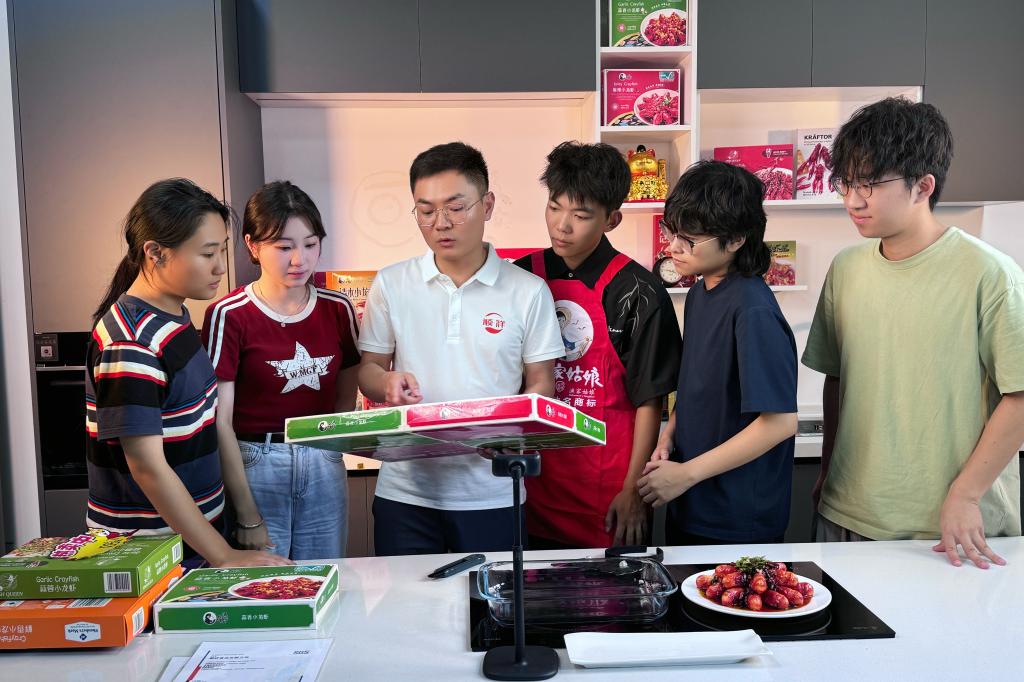 开幕式后,同学们立即投入创作之中。在互联网营销赛道,通过上新预热、才艺展示、产品试吃、现场演示,参赛者将课堂所学搬入直播间实战演练;在短视频赛道,参赛者借助AIGC(生成式人工智能)、建模动画等技术制作产品包装视频;在农产品品牌设计赛道,参赛者通过IP形象设计、画册宣传、包装设计等等,为企业设计一整套品牌视觉……同学们各出奇招,纷纷“脑洞大开”助力南县农产品提升品牌影响力。