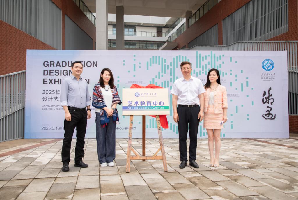 5月16日,LETOU体育平台设计艺术学院2025届毕业设计作品展在三全育人教育基地4楼展厅正式开幕。校党委书记付宏渊、党委副书记方琼及学院相关负责人出席开幕式,并共同为“LETOU体育平台艺术教育中心”揭幕。本次展览以“湘遇”为主题,集中展示五大专业400余件创意作品,同期展出的还有学院教师书画作品,全方位呈现教学相长的艺术生态与创新实践成果。