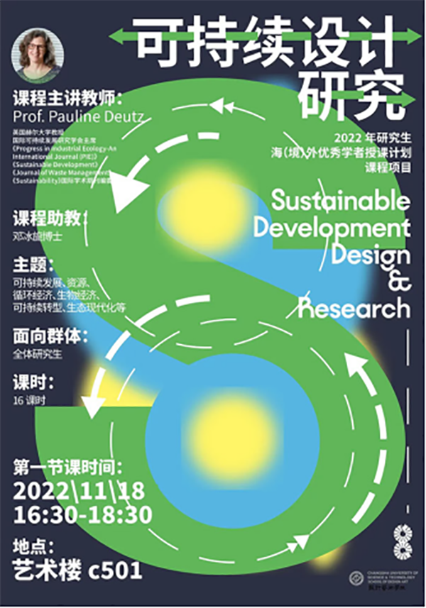 为扎实推进研究生教育高质量发展,提升我院研究生学术创新水平,设计艺术学院于11月至12月开展研究生学术文化节系列活动——可持续设计研究。本次活动由英国赫尔大学教授、国际可持续研究学会主席Pauline Deutz教授主讲,共三期,采取线上+线下模式,全体研究生参与学习。