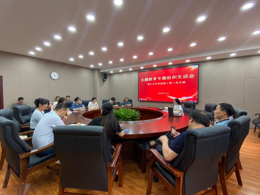 9月12日下午,学院三个教工党支部分别在艺术楼会议室召开学习贯彻习近平新时代中国特色社会主义思想专题组织生活会。各支部全体党员参加会议,会议分别由第一党支部书记严海岸、第二党支部书记文卫民、第三党支部书记陈书芳主持,院领导班子成员参加了各自支部的学习。