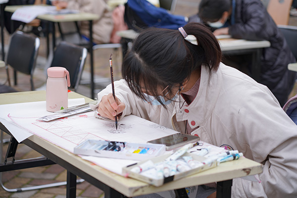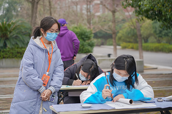 书画篆刻是民族文化的象征,以汉字为载体,与多种艺术相结合,书写记录着历史,传递着中华民族伟大思想与精神,墨浪书画协会特此开展此次活动。沸焰音乐社曼陀罗乐队、阳光艺术团礼仪模特队、艺术学子分别带来精彩纷呈的节目表演,以音乐、走秀、诗朗诵等多种形式展现了中国日新月异的发展,辉煌壮丽的图景。王元建、杨珍、李正庚、印华江现场题字,参赛者感受到了绝佳的书法魅力。随后,参赛选手们伴着阳光艺术团器乐队带来的悠扬乐音,平稳心态、端正身姿、一丝不苟地开始临摹字帖。参赛同学们的优异表现、老师的专业指导,营造了浓厚的文化与历史学习氛围。最后,全体人员进行合影留念。