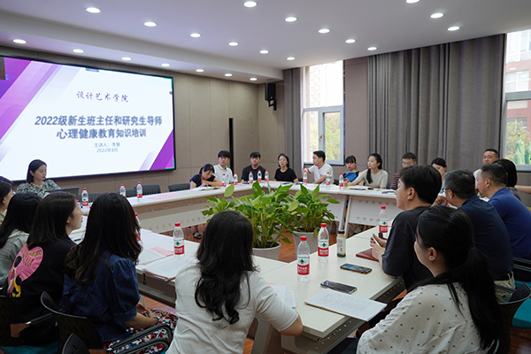 8月28日下午,设计艺术学院于建筑艺术楼C320召开2022级新生班主任和研究生导师心理健康教育知识培训会。本次会议由设计艺术学院心理辅导员李慧老师主讲,2022级新生班主任和研究生导师参与。
