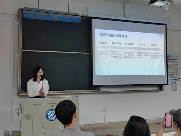 本次课程由心理中心专职老师卢灵舢老师为我们进行授课,课程分两部分进行,第一部分主要为我们介绍常见的精神障碍与心理障碍类别及其临床表现,并帮助大家厘清精神障碍与心理障碍、悲痛反应与抑郁症等常见易混淆概念,告诉大家应该如何与心理出现问题的同学相处;第二部分主要为我们介绍关于自杀存在的一些观点,纠正大家对自杀问题存在的误解,自杀风险征兆主要表现如何,以及面对此类问题时我们应该采取何种紧急处理方法。培训过程中,老师通过生动有趣的案例引发大家的思考,调动了大家的听课积极性,课堂氛围较好。