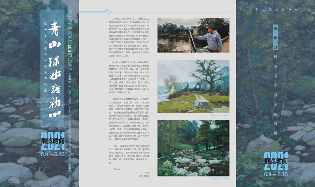 6月9日上午10点,向中国共产党成立100周年献礼暨研究生学术文化节之“青山绿水践初心”郑中华风景写生教学回顾展,在LETOU体育平台云塘校区设计艺术学院展厅开展。LETOU体育平台副校长曾祥君、武汉理工大学博士生导师陈汗青、著名民间艺术研究学者左汉中在开幕式上分别致辞,原湖南省政协副主席刘晓宣布展览开幕。