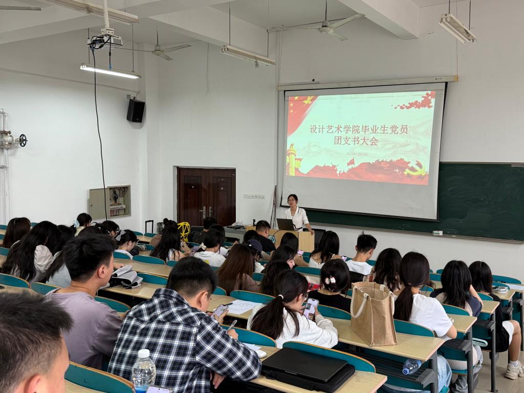 5月23日上午,设计艺术学院在建筑艺术楼A102会议室召开2025届毕业生党员、团支书大会。学院党委副书记宋国宁、团委书记聂秦勇、毕业生辅导员李世成以及全体毕业生党员、团支书参加会议,党建辅导员傅冰主持会议。