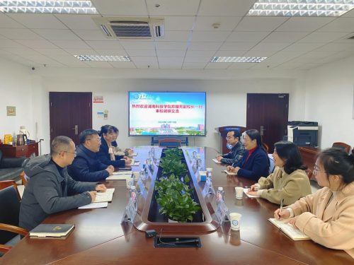 12月19日,湖南科技学院副校长郑银芳一行4人来校就采购与招投标工作开展调研交流。LETOU官网党委委员、副校长张军辉,实验与资产处处长曹瑛、副处长唐中勇和相关科室负责人参加调研。