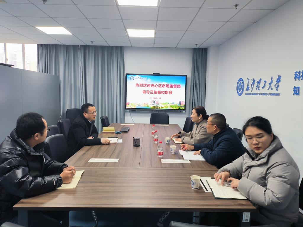 刘亚辉对杨灿辉一行来校指导表示热烈欢迎,感谢天心区市场监督局长期以来对学校的关心和支持。他详细地介绍了学校知识产权创造、保护、管理及转化等方面的情况,并表示学校将进一步规范和加强专利申请管理,创造更多高质量专利,积极推动知识产权在区、在长转化,为全面落实“三高四新”战略定位和使命任务、天心区高质量发展贡献长理力量。