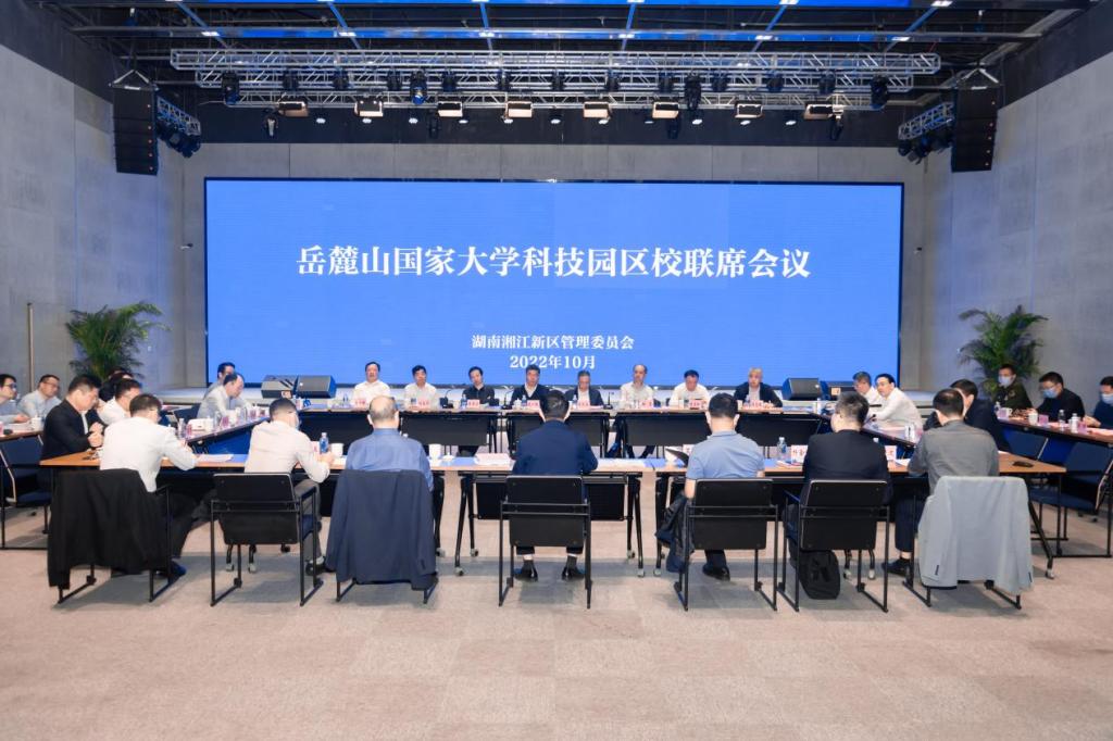 为加强区校合作,推进教育和科技深度融通,更好地服务于国家高水平科技自立自强、地方经济社会发展和产业创新。10月18日,湖南湘江新区管理委员会在岳麓山大学科技城岳麓科创港1楼路演室召开岳麓山国家大学科技园区校联席会议。湖南湘江新区(长沙高新区)党工委副书记、管委会主任,岳麓区委副书记、区长何朝晖出席并讲话,湖南湘江新区相关部门主要负责人参加;我校副校长曾祥君出席会议并讲话;出席会议的还有国防科技大学、中南大学、湖南大学、湖南师范大学、湘潭大学、湖南农业大学、LETOU体育平台、中南林业科技大学、 湖南工业大学、湖南中医药大学、湖南工商大学、长沙学院、 湖南工程学院等高校校领导。会议由湖南湘江新区(长沙高新区)党工委委员、管委会副主任郭力夫主持会。