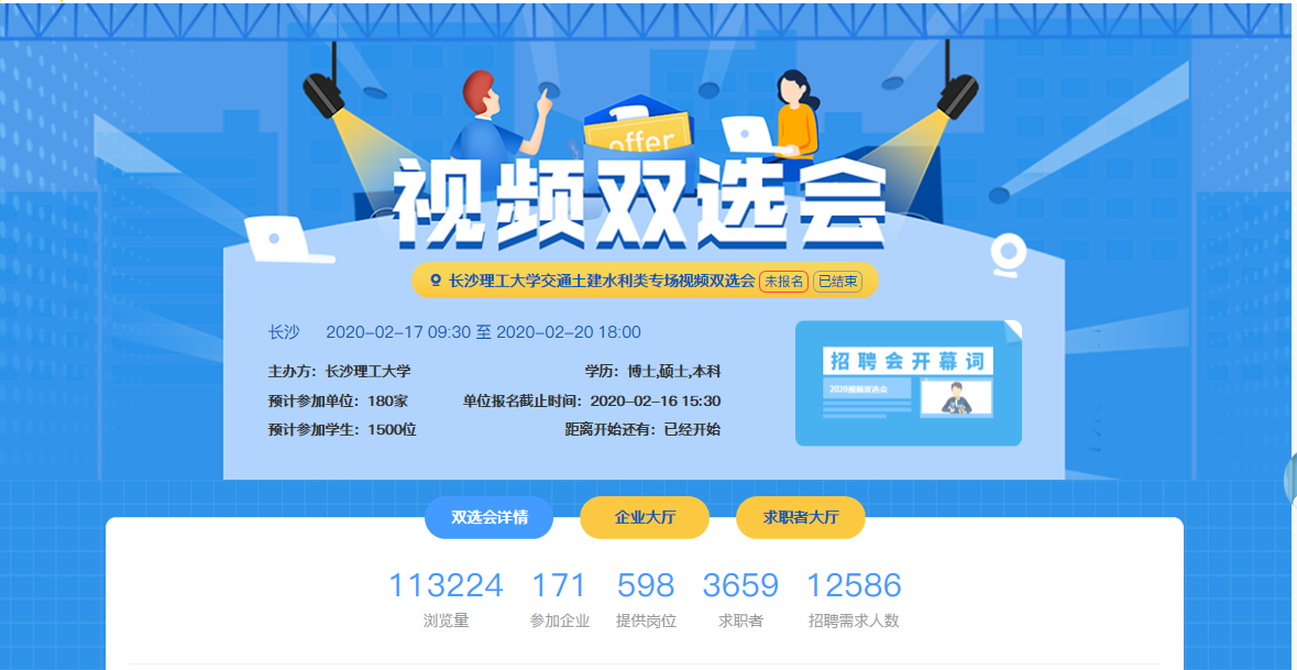 组织招聘活动“不停歇”。学校迅速转变思路,2月4日开始着手部署线上视频双选会、云宣讲会上线运行工作,为用人单位和毕业生提供丰富的线上展示和交流平台。2月17日,学校在省内率先开展在线视频“无接触”双选招聘周活动,历时一周的视频双选活动共889家单位参会,为毕业生提供就业岗位14352个,吸引了670所高校的2.4万毕业生关注,1.7万人参与网上招聘,应届毕业生就业工作“不停歇”的目标得以实现,吸引了多家媒体深度报道。3月份以来,学校将线上双选会和云宣讲专场招聘会组织常态化,每周定期组织1-2场线上双选会,云宣讲会按企业需求即时开展。截至目前,学校共组织线上视频双选会、云宣讲专场招聘会30余场,据不完全统计,达成初步就业意向1000余人。