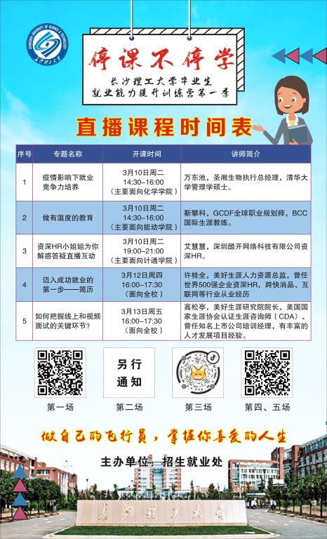 学校全方位开展线上就业指导推动就业工作。一是开展线上就业咨询辅导,包括职业生涯规划、求职技巧、就业心理、就业形势等,学生预约即可开展线上咨询辅导。二是推出线上免费学习优质课程,涵盖各类公考指导、生涯规划、就业指导和大学生创业课程等。三是开展毕业生就业能力线上提升训练营(第一季)活动,推出了“疫情影响下的就业竞争力培养”“做有温度的教育”等5期课程,参与学生9000余人次。此外,各学院也根据实际开展简历诊断、信息推送、心理疏导等专业细致的就业指导服务。