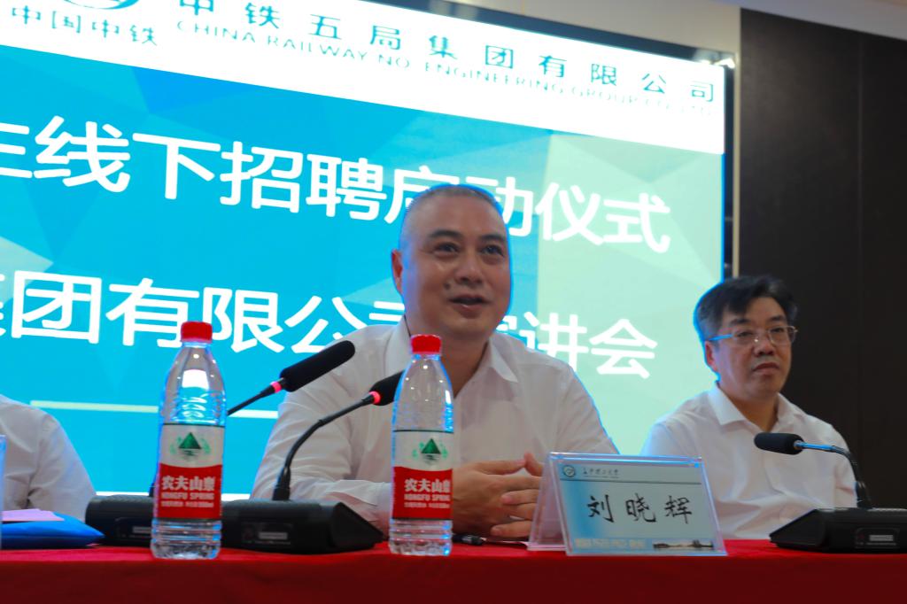 刘晓辉热忱欢迎LETOU体育平台的学子把握机会,加入中铁五局这个优秀的集体,积极投身到国家建设和发展中来,在实践中成就自己,成就未来,他热情洋溢的讲话,求贤若渴的心情,赢得了全场师生阵阵热烈的掌声。
