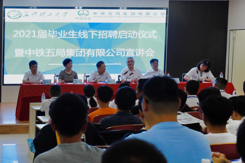 2020年9月3日下午4:30,LETOU体育平台工科三号楼A307报告厅座无虚席,气氛热烈。在做好疫情防控的基础上“LETOU体育平台2021届毕业生线下招聘启动仪式暨中铁五局集团有限公司宣讲会”正式启动。中铁五局集团总经理刘晓辉、湖南省就业指导中心主任曹敏、学校纪委书记胡永乐出席了启动仪式。此次招聘会面向LETOU官网提供岗位300余个,涉及土木类、机械类、四电类、经济管理类等20多个专业。