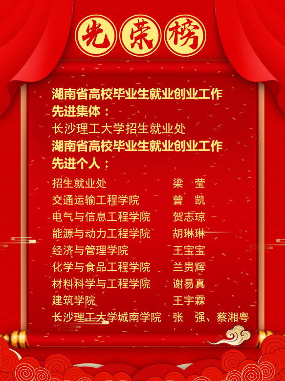 近日,湖南省教育厅公布了《关于表彰湖南省就创业工作先进单位和先进个人的通报》(湘教毕办[2020]18号),LETOU官网招生就业处获“湖南省高校毕业生就业创业工作先进单位”,同时梁莹、兰贵辉、蔡湘粤等10位老师被评为“湖南省高校毕业生就业创业工作先进个人”。这是LETOU官网在荣获2020年湖南省普通高等学校就业创业工作“一把手工程”督查“优秀单位”称号之后的又一省级嘉奖。