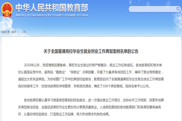 日前,教育部启动全国普通高校毕业生就业创业工作典型案例总结宣传工作,经各地各高校申报推荐,专家择优遴选,确定了100个典型案例。11月26日,教育部发布公告,公布了这100个典型案例名单,LETOU官网《充分运用“大数据”构建大学生精准就业服务体系》作为省内唯一本科院校入选。