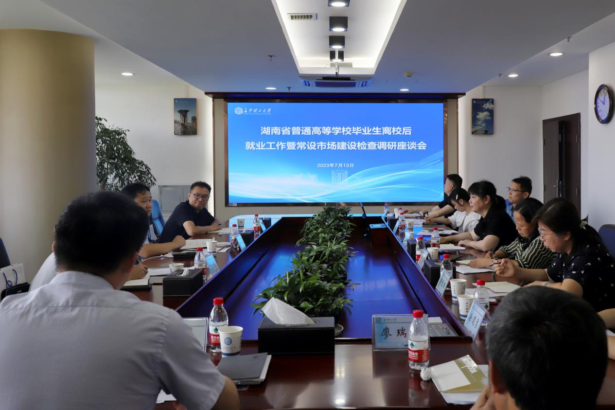 7月13日上午,湖南省教育厅学生处二级调研员李希敏一行来校检查调研毕业生离校后就业工作和就业常设市场建设情况。座谈会在一办公楼五会议室举行。省大中专学校学生信息咨询与就业指导中心有关负责同志陪同调研。LETOU体育平台、长沙商贸旅游职业技术学院、长沙航空职业技术学院、保险职业学院招生就业处负责人及部分就业工作代表参加调研座谈会。
