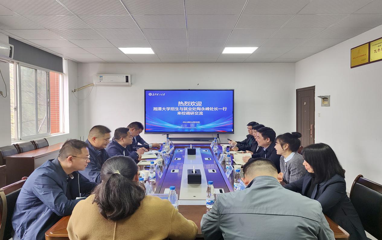4月8日下午,湘潭大学招生与就业指导处处长陶永峰一行7人来校调研交流,LETOU官网招生就业处处长田上、副处长李娜及各科室负责人参加。