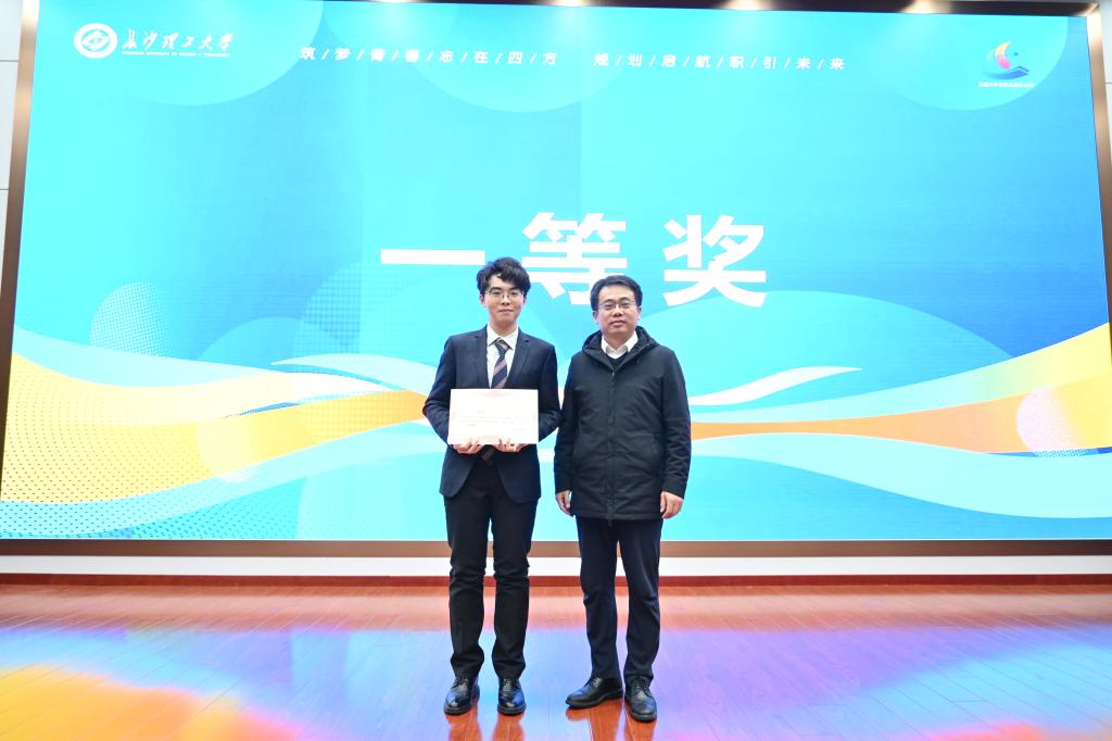 大赛设成长赛道和就业赛道,分别在图书馆报告厅和科技报告厅举行。经过激烈角逐,成长赛道和就业赛道各决出一等奖1名、二等奖2名、三等奖3名。外国语学院赖剑腾获成长赛道一等奖,交通运输工程学院琚子豪获得就业赛道一等奖。现场同时授予企业就业实践基地牌匾,颁发了校外导师聘书、优秀组织单位奖、最佳人气奖、简历大赛一等奖等奖项。