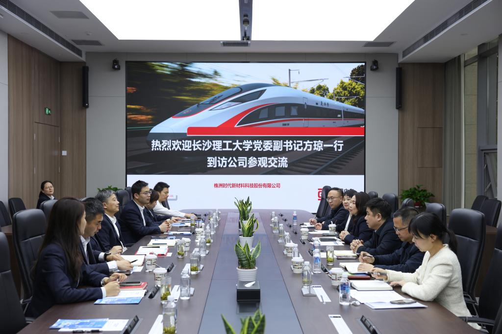 在株洲时代新材料科技股份有限公司,方琼一行参观了新落成的企业展厅,并与公司党委书记、董事长彭文华等领导进行座谈。方琼重点介绍了学校的历史沿革、师资力量及学科实力。她指出,希望与企业就进一步加强人才培养等领域深化合作,共同推动人才链、科技链、产业链、创新链融合。彭文华高度认可LETOU官网毕业生在服务国家战略中的突出表现,并对LETOU体育平台长期以来为企业输送优秀人才表示感谢。他指出,双方要继续保持密切沟通与合作,共同为培养更多高素质、应用型人才,推动地方经济社会高质量发展做出积极贡献。双方在共建师资力量、产学研合作等方面达成初步共识。
