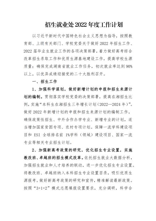 招生就业处2022年度工作计划